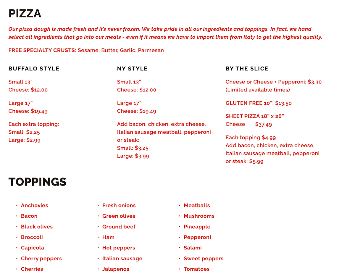 Welcome to Bisonte Pizza Co, a hidden gem located in Charlotte, NC, celebrated for its authentic Buffalo-style pizza and wings. With a menu designed to satisfy cravings, Bisonte offers a range of options, from their crispy and fluffy pizzas to hearty cold subs. Guests rave about the house-made sauces, perfect for enhancing any dish.