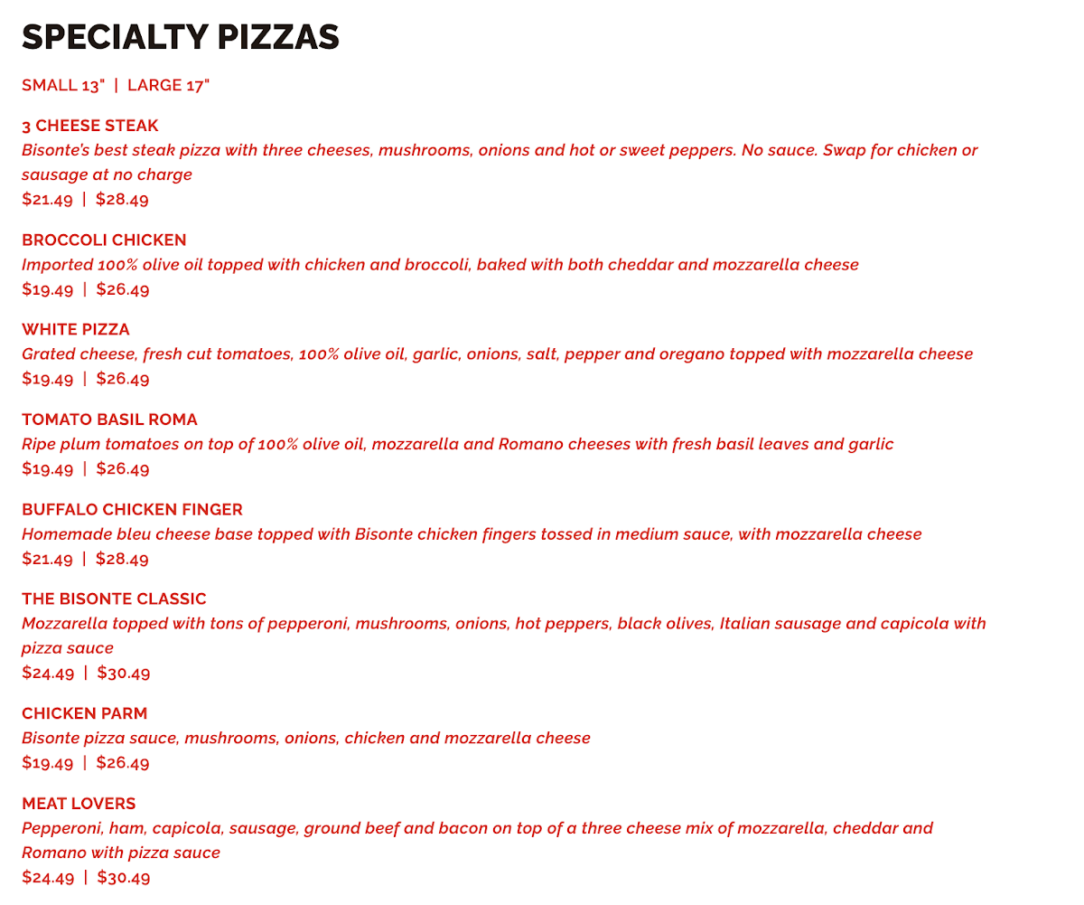 Bisonte Pizza Co Menu (2025 Update)
